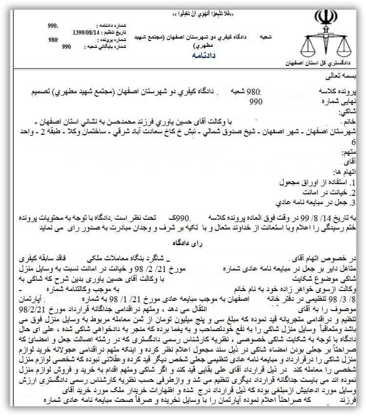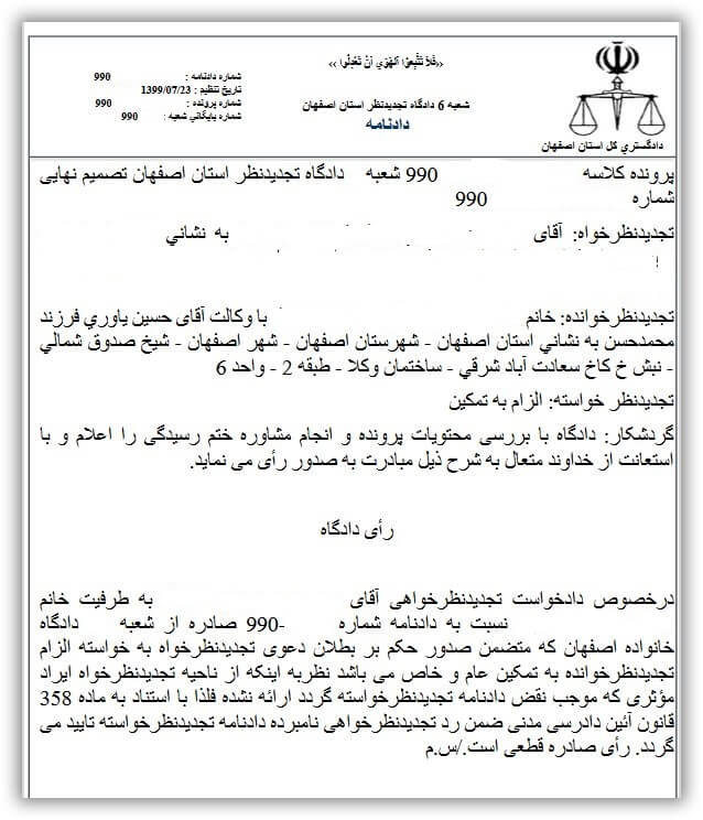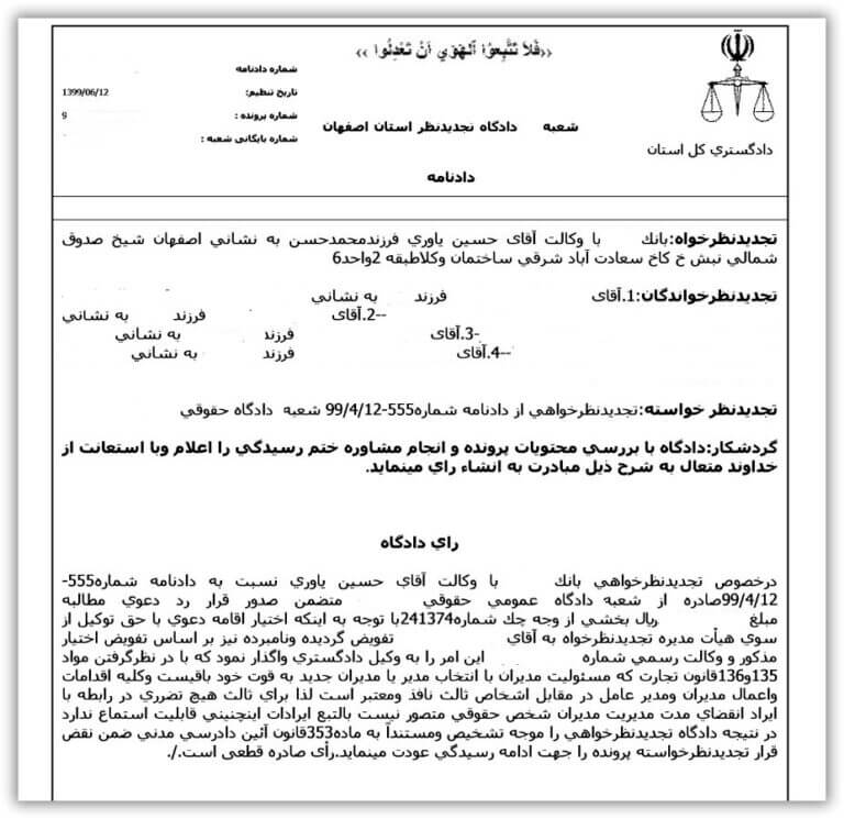نمونه آراء و صدور رای توسط حسین یاوری